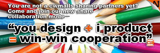 Tradition, fashion, trend, whatever styles, as long as you love designing, have enthusiasm, have creativity, Cwmalls will be the platform for you to show your talents, show yourself, we welcome you! We will cooperate with you who dare to innovation, who are brave to practice. We will transform your creative works into real products; share it with fans of yours and ours.