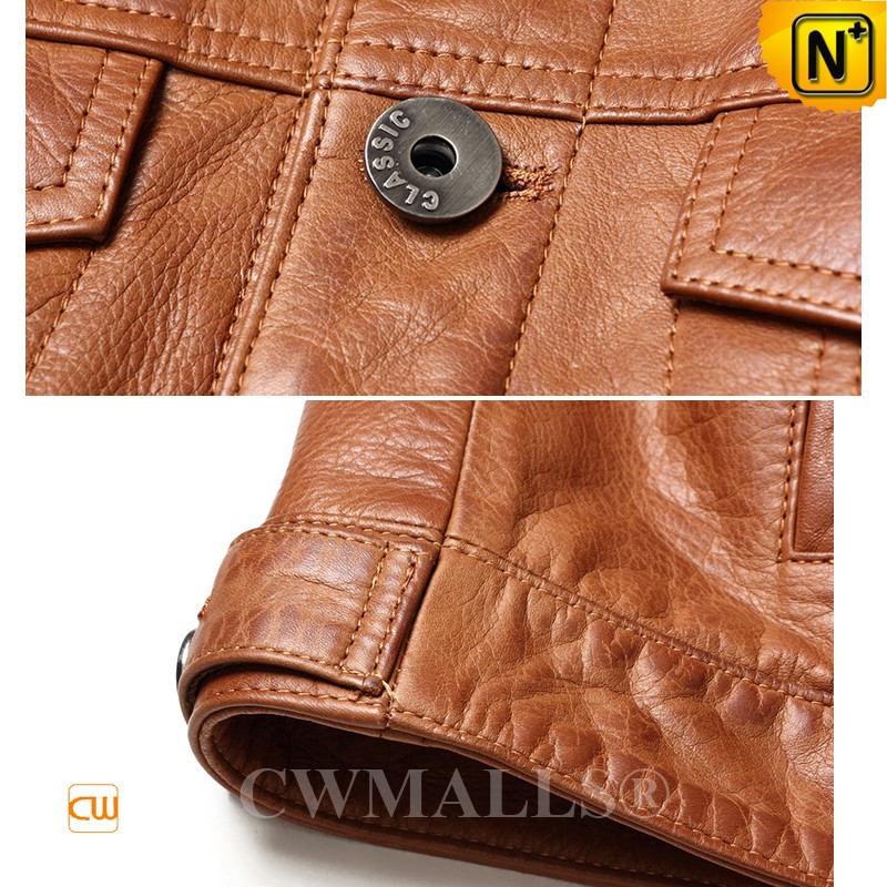 CWMALLS® Men's Button up Calfskin Leather Cowboy Jacket CW808053