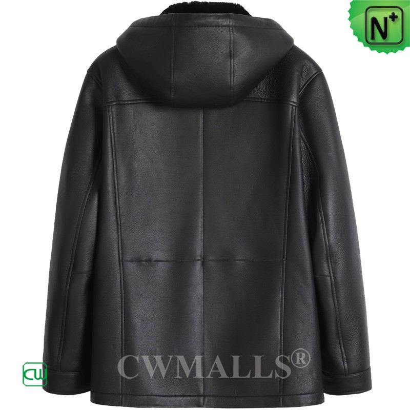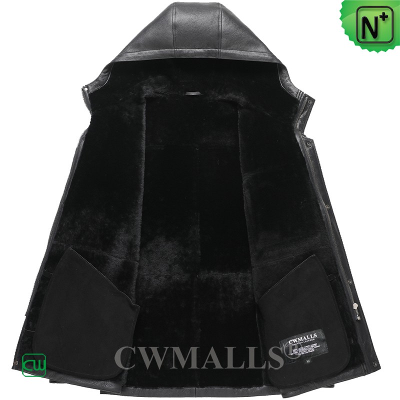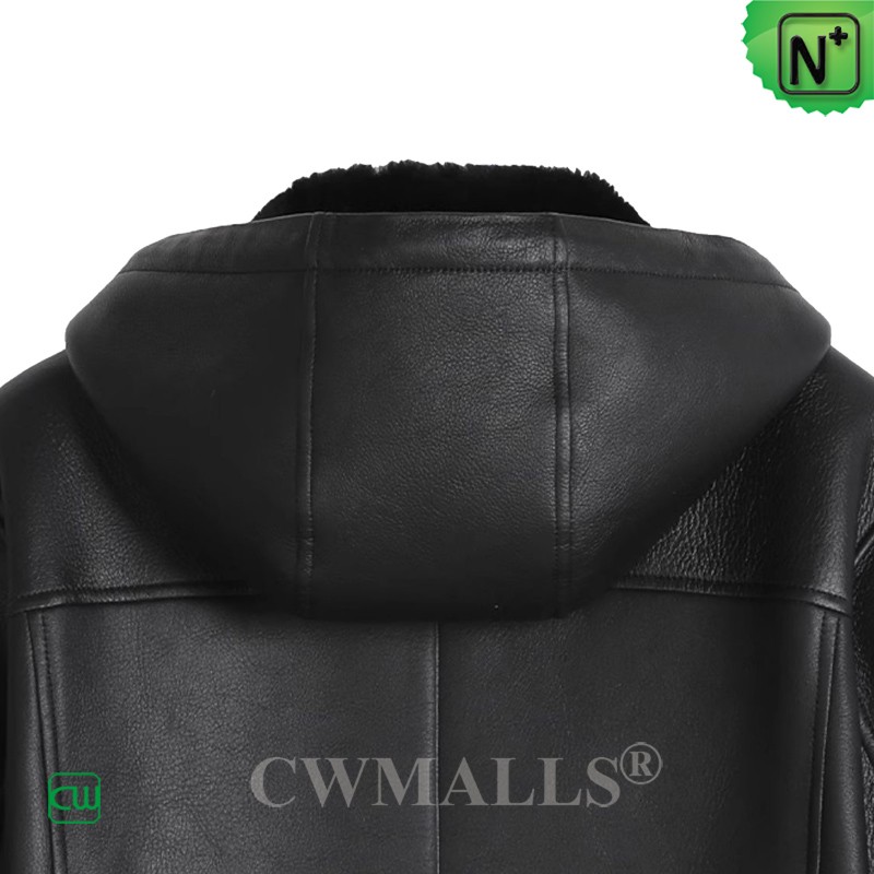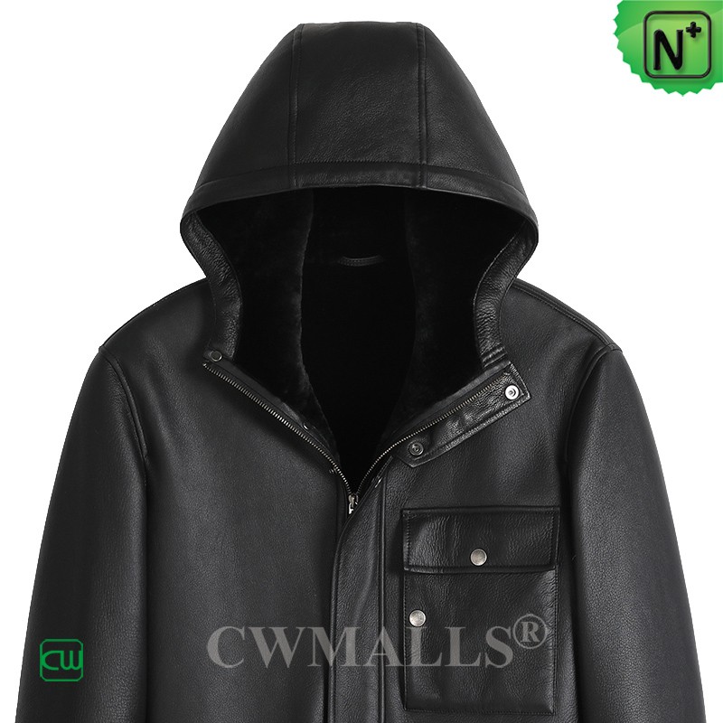 CWMALLS Men Hooded Merino Sheepskin Coat Black CW828539
