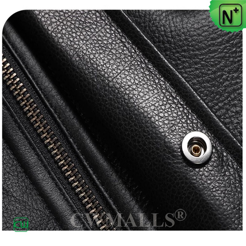 CWMALLS black sheepskin coat crafted from natural sheepskin shearling. Features a warm sheepskin hood, snap placket over zip front closure, a flap chest pocket, and two zip hand pockets, its clean lines bring subtle structure to an easy-to-wear coat. This hooded sheepskin coat is prepared to take on the coldest days of the year. Natural merino shearling sheepskin construction provides combat-strength insulation from the elements for a cozy winter.