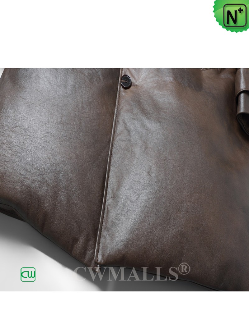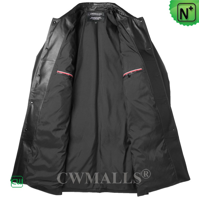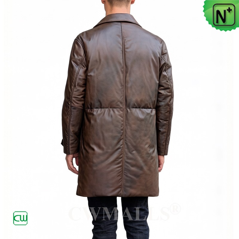 CWMALLS® Custom Mens Long Leather Coat with Goose Down Filled CW826371
