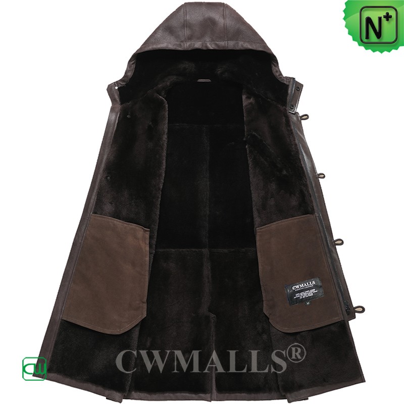 CWMALLS Men Vintage Merino Sheepskin Coat with Hood CW828616