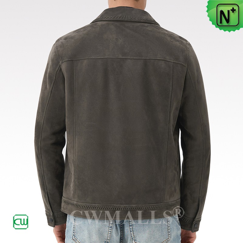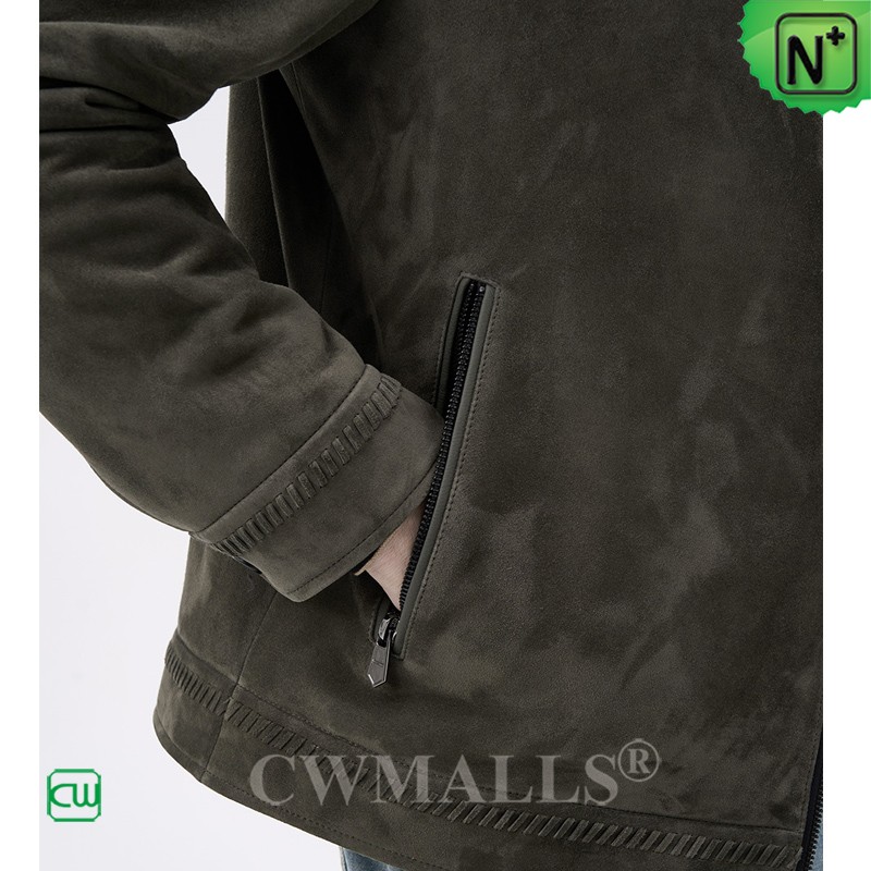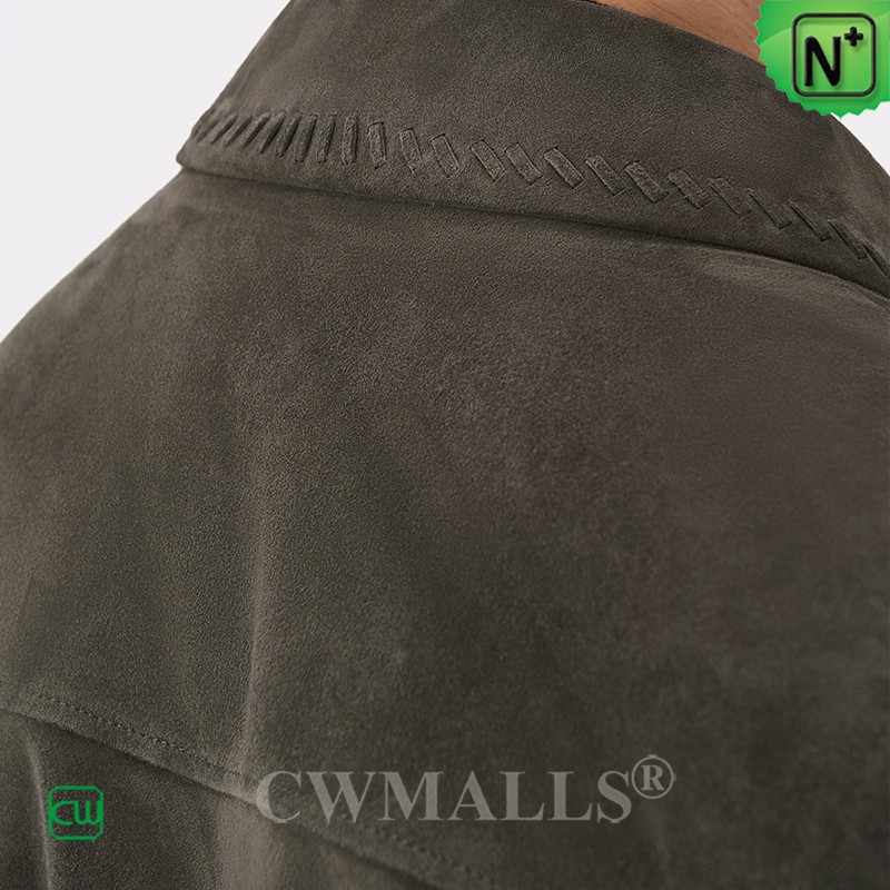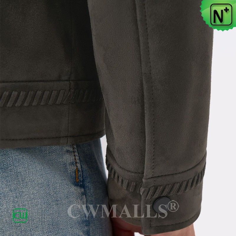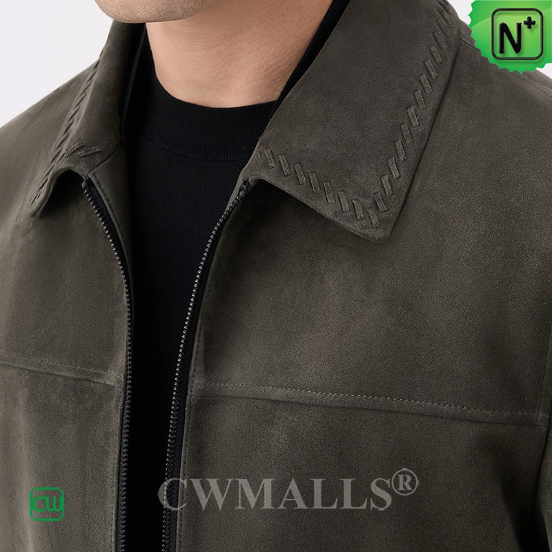CWMALLS Men Zip-Up Suede Leather Jacket Grey CW825816