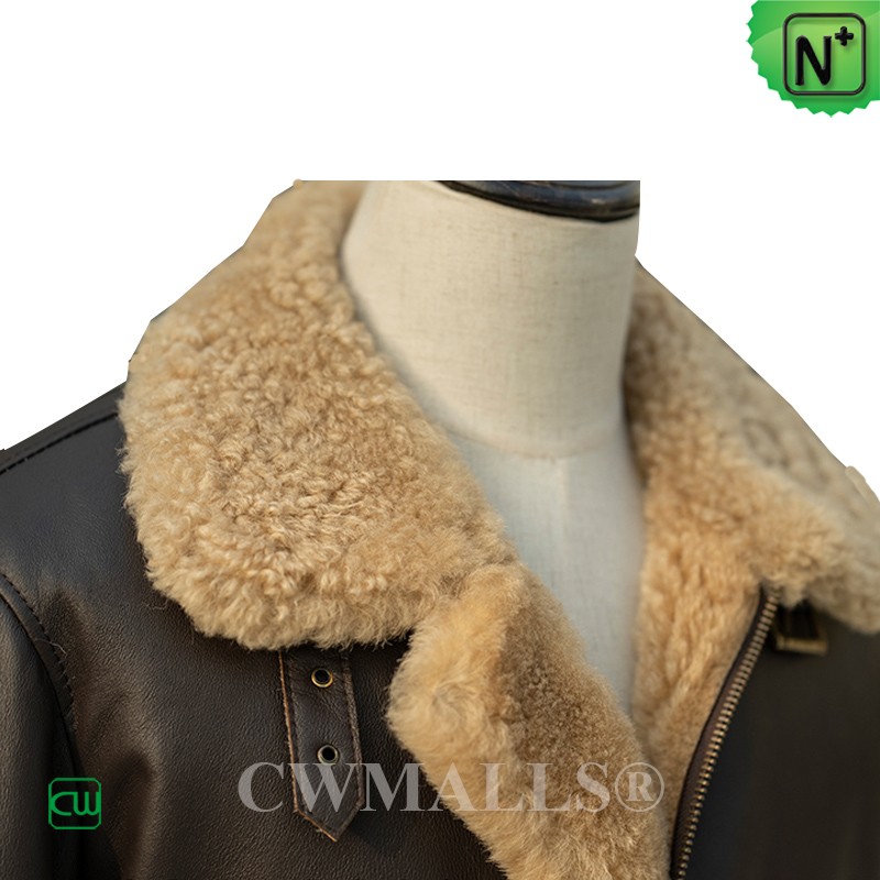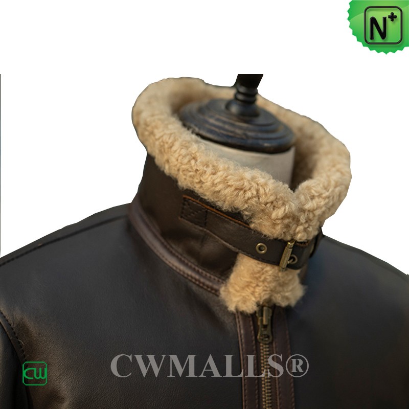 CWMALLS B-3 bomber jacket crafted from incredibly durable yet soft Toscana sheepskin shearling, features convertible notch-to-standup collar with a buckle strap, metal two-way zip front closure, adjustable waist tabs and two side slant pockets.. Natural Toscana sheepskin construction provides both warmth and breathability. When you feel a chill in the air, just pop the collar and let its silky texture shield your face. Classic sheepskin B-3 bomber is an updated version of the original WWII jackets. This Toscana sheepskin jacket as a flexible top layer over any piece in your winter wardrobe.