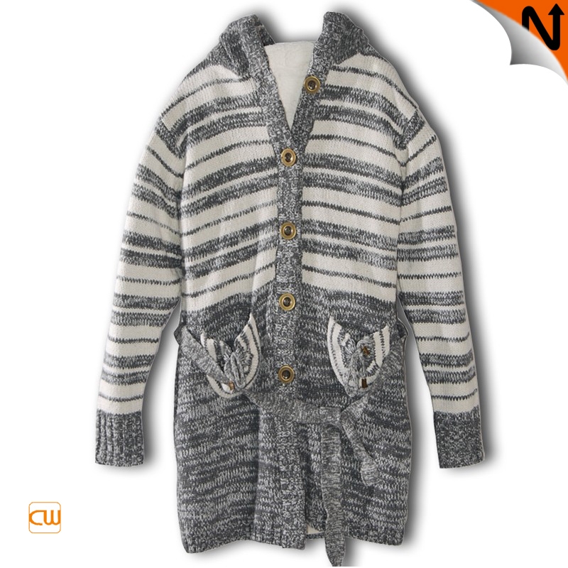 New Ladies' Knitted Hooded Knitting Wool Long Sleeve Sweater CW103013
