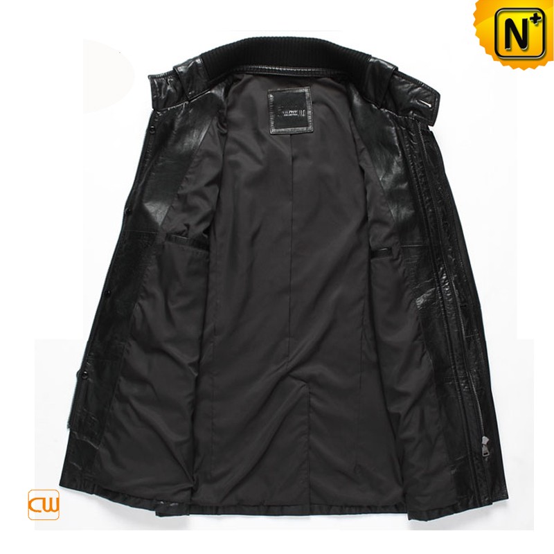 Men's Black Real Goat Skin Leather Hunting Coat CW833901