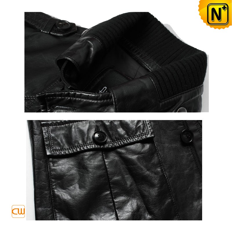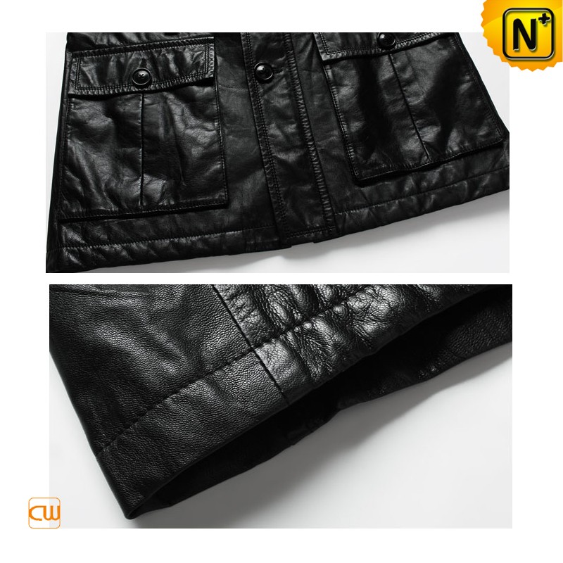 Men's Black Goat Skin Leather Hunting Coat CW833901