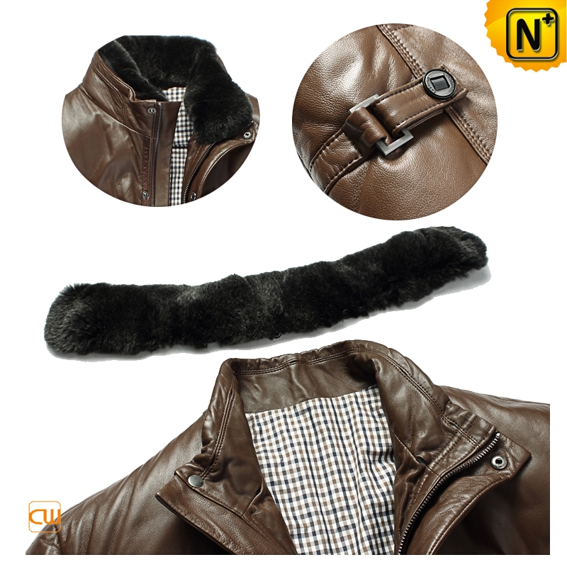 Men's Casual Sheepskin Leather Down Jackets Removable Mink Fur Collar CW832203