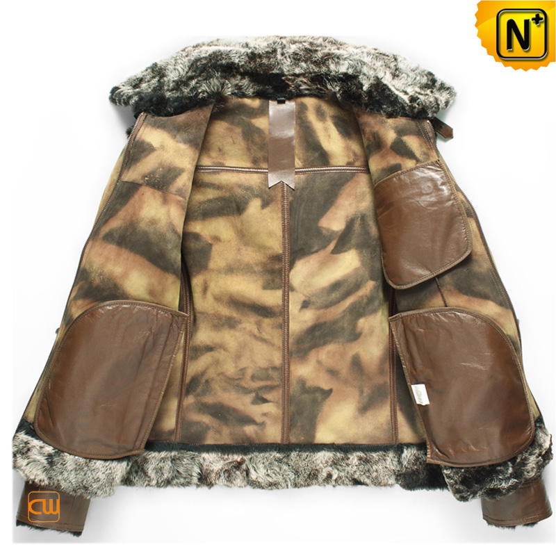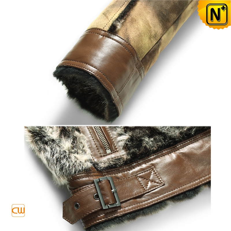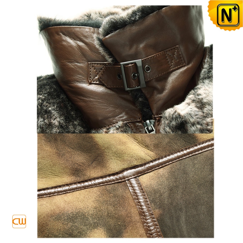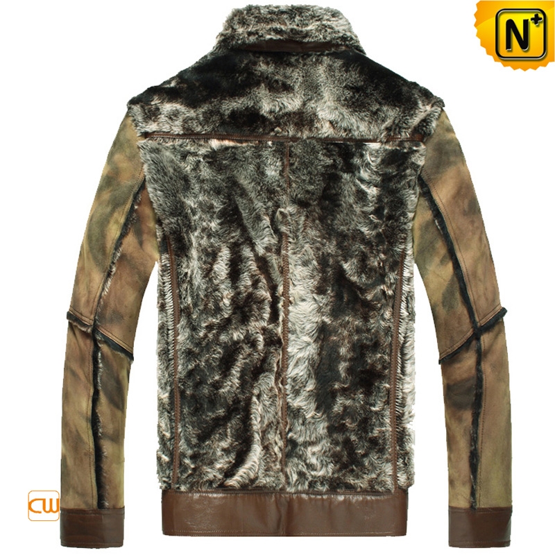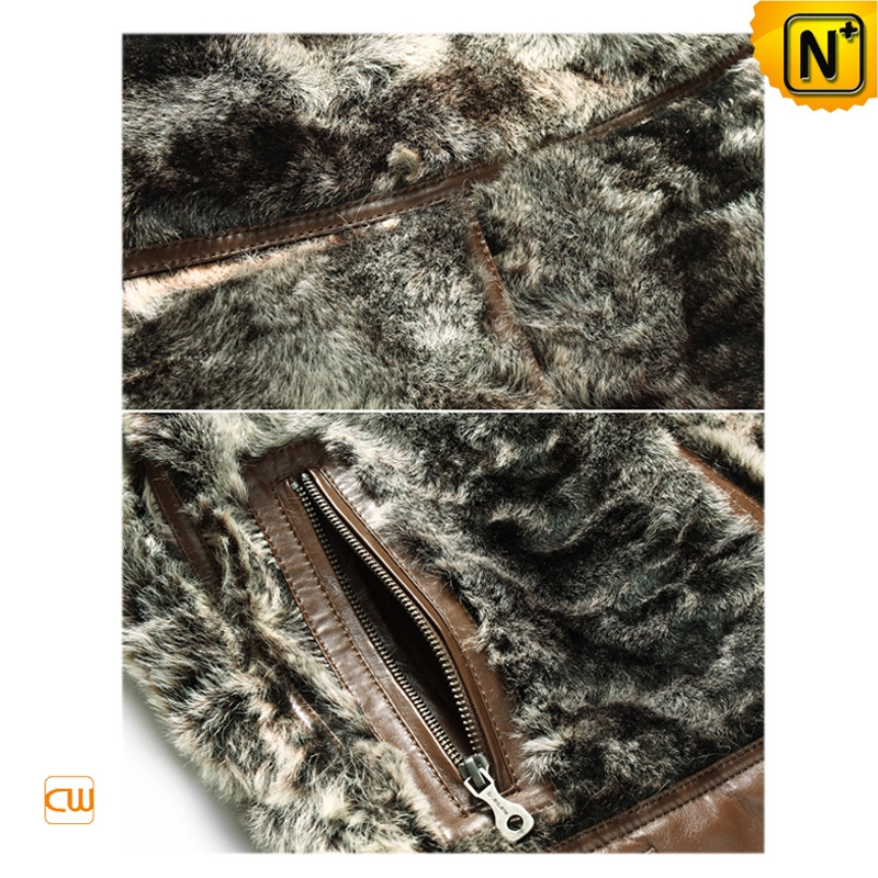 Men's Designer Printed Brown Shearling Fur Leather Jacket CW868004
