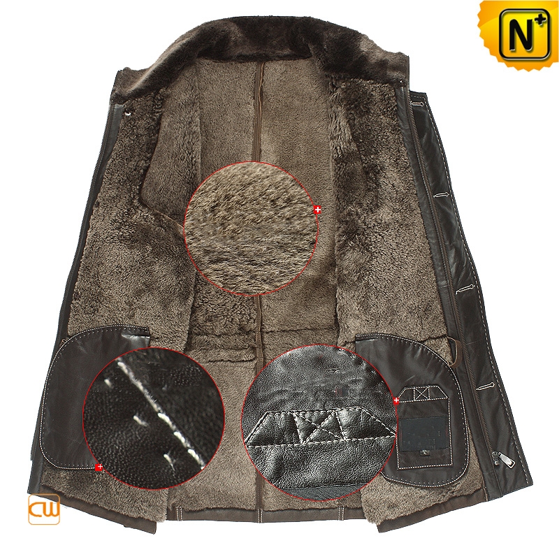 Men's Warm Fur Lined Lambskin Leather Coat CW833348