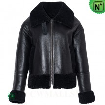 CWMALLS® Custom Women's Shearling Bomber Jacket Black CW625133