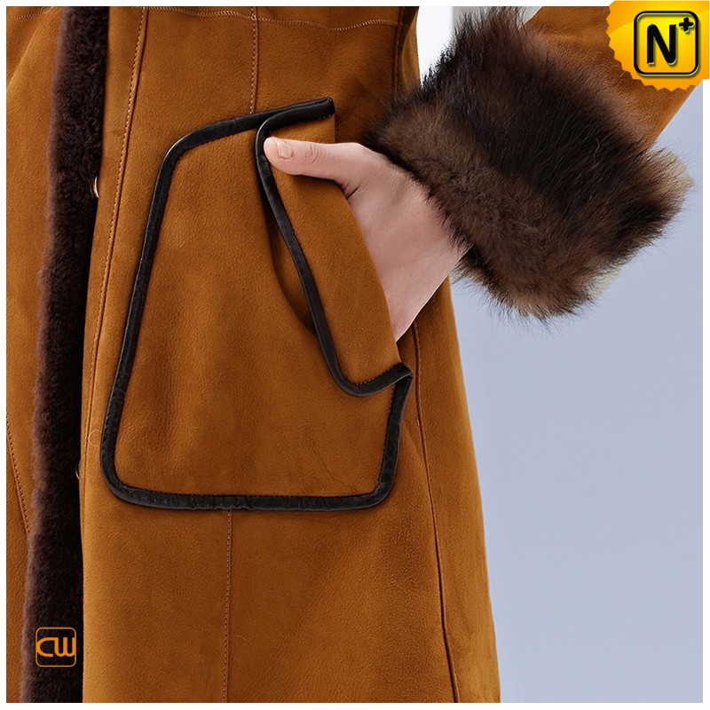 Women Merino Shearling Coat Sable Fur Collar CW644128