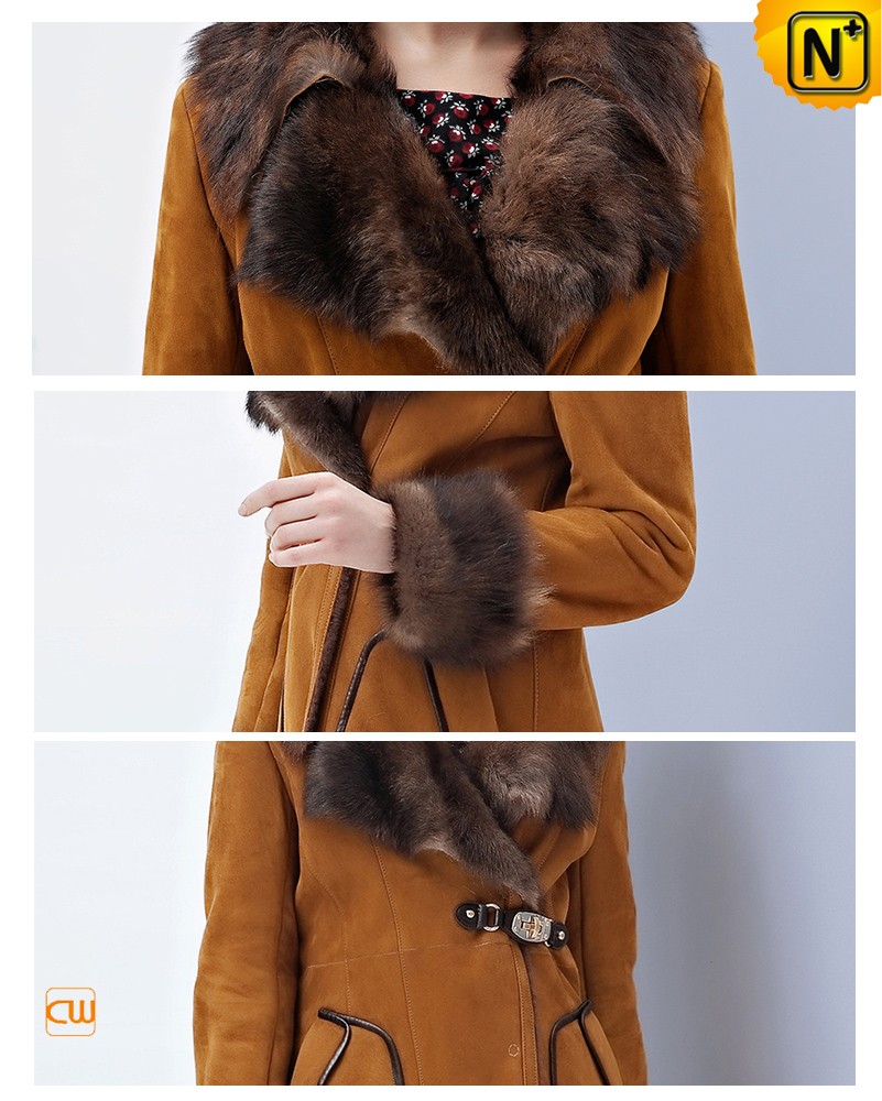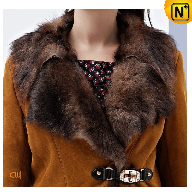 Women's Sheepskin Coats Sable Fur Collar CW644128